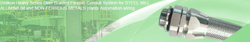 Cost saving and the guarantee of the rolling performances are the challenging and demanding requests of all the steel producers during Hot and cold strip mill upgrading, they chose Delikon EMI Shielding Heavy Series Over Braided Flexible Conduit and Heavy Series Conduit Connector as the preferred reliable cable management system to protect Hot and cold strip mill automation data and power cable because of the high level of competence and the solutions proposed in terms of quality and reliability. Delikon EMI Shielding Heavy Series Over Braided Flexible Conduit and Heavy Series Connector effectively isolate wires from the environment through which the cable runs, combating the effects of EMI. The heavy series metal connector clamp the over braiding tightly forming electrical contact around the entire periphery of the shield, providing a 360 degrees SHIELD termination. The complete Delikon heavy series braided flexible conduit and connector assembly provides a low impedance path to ground and delivers a relatively thick and exceptionally conductive boundary around the cables that reflects and absorbs disruptive signals. |