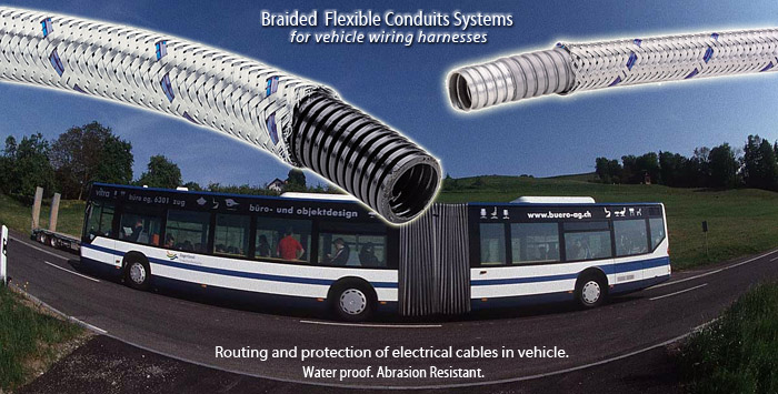 Braided Flexible Conduit systems for use on vehicle wiring harnesses FLEXIBLE EMC SCREENING Offshore Applications Delikon is a leading supplier of braided flexible conduit systems for routing and protection of electrical cables in vehicle wiring harnesses. We work extremely closely with vehicle manufacturers and OEMs in the development of flexible conduit systems to suit individual applications. Offering best design solution utilising our extensive range of interfaces mean we can often offer tailored and innovative solutions for almost any giving wiring application.