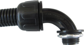 | This angle non-metallic connector provides a smooth, gradual radius bend. Wiring is easily pulled or pushed through fitting and there are no sharp edges to strip wire. | ||||||